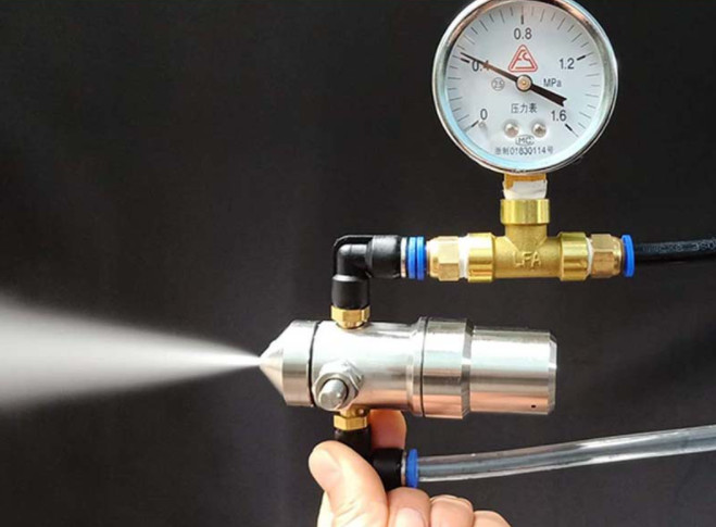 Béc phun sương được trang bị khớp nối để kết nối khí và chất lỏng, và khớp được trang bị khớp nhả nhanh 6 mm.